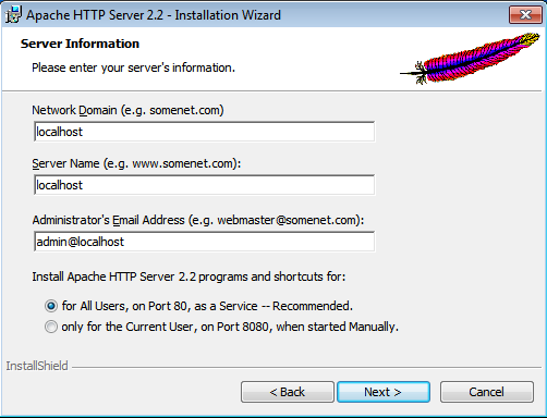Apache 2.2 (opisany sposób instalacji i konfiguracji został przeprowadzony za pomocą wersji 2.2.17 Win32 Binary without crypto (no mod_ssl) (MSI Installer))