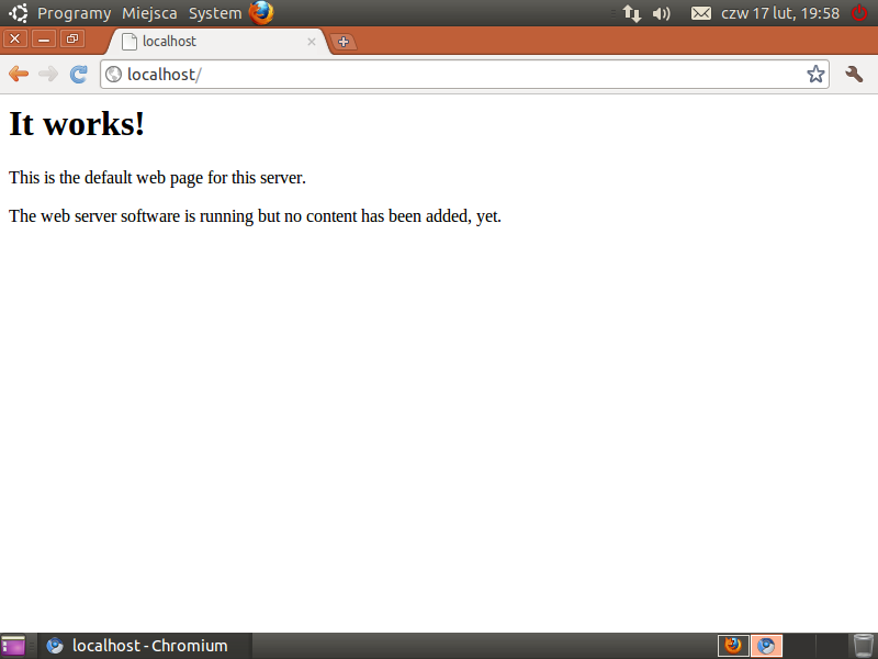Jeśli wszystko wykonaliśmy prawidłowo na ekranie powinniśmy otrzymać komunikat It works.